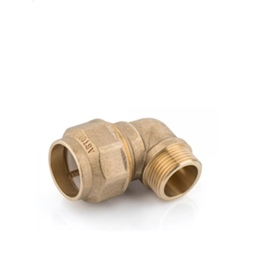 Male elbow fitting for polyethylene with plastic ring